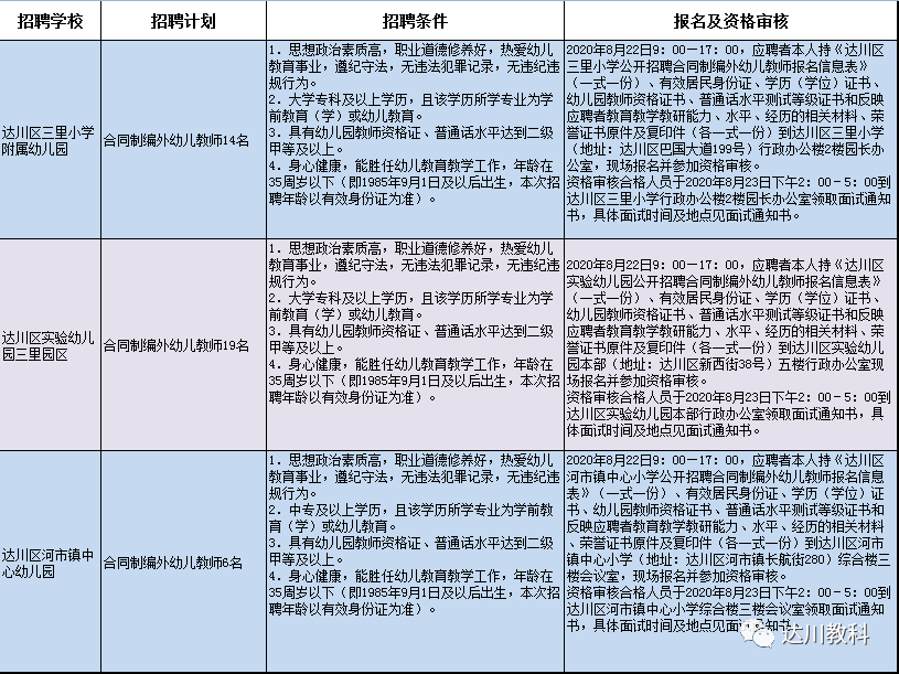 招聘信息綜合自達(dá)川區(qū)三里小學(xué)、達(dá)川區(qū)實驗幼兒園、河市鎮(zhèn)中心小學(xué)